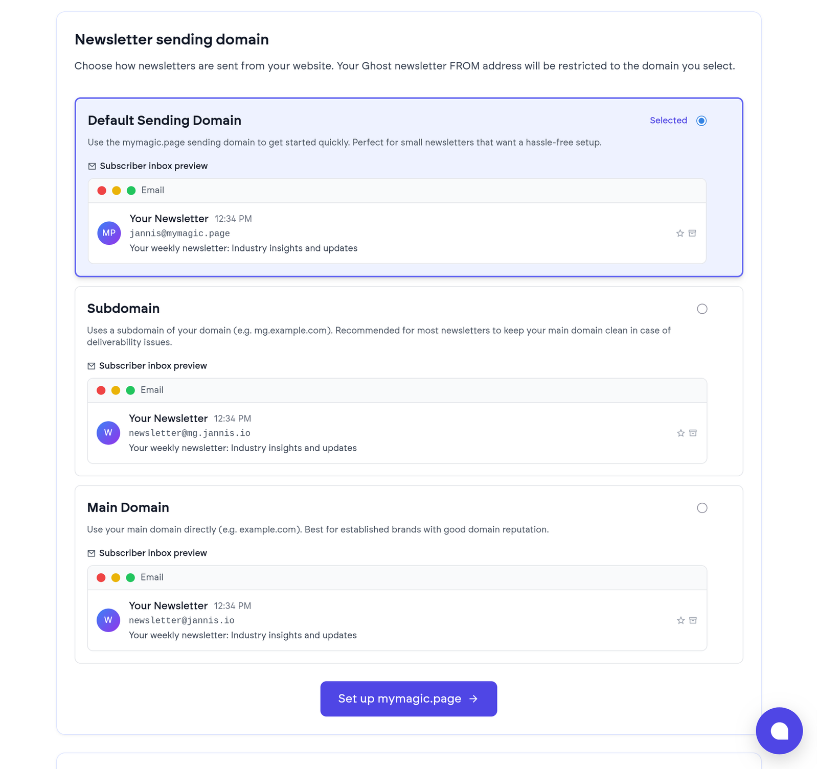 Your newsletter sending domain determines how your newsletter gets delivered to your subscribers. Getting this right is crucial for email deliverability and building trust with your audience.