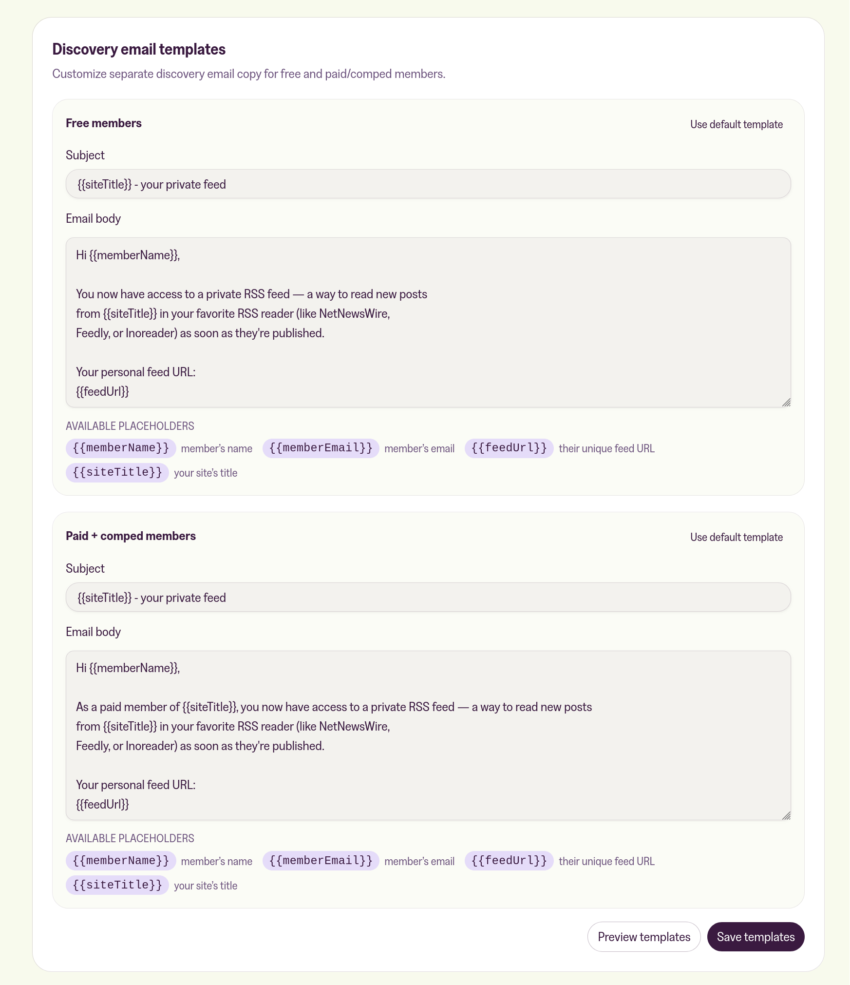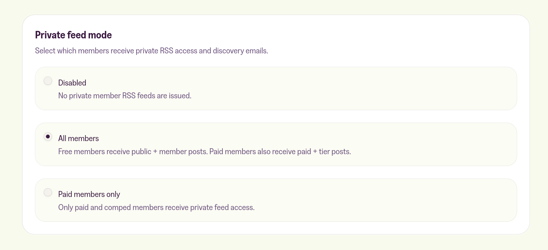 Private feeds close that gap. Your paid members get the full reading experience in whatever app they prefer, without depending on email delivery or visiting your site directly.