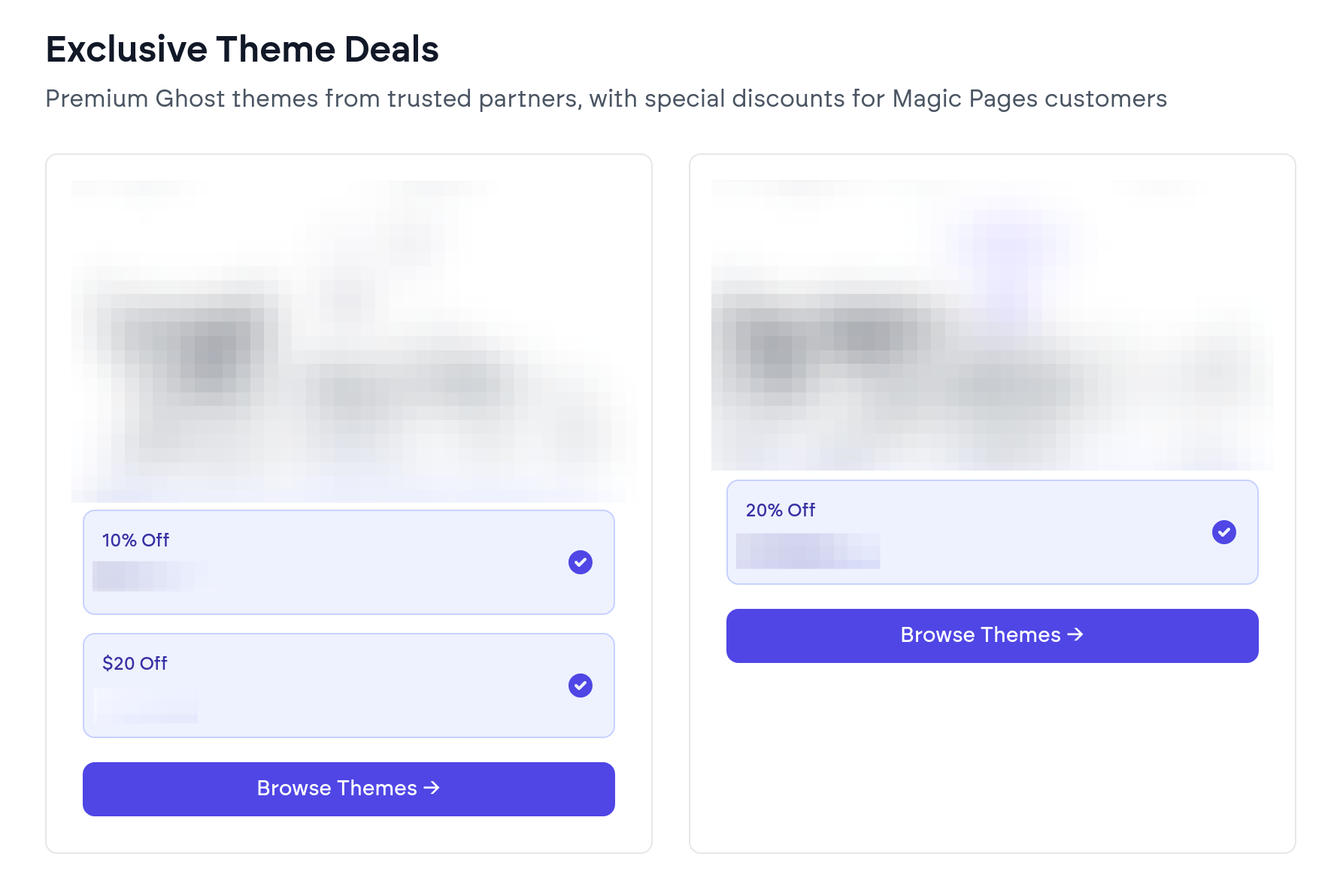 Looking for a new premium theme for your Ghost site? Magic Pages customers can now get exclusive deals with two amazing theme studios: